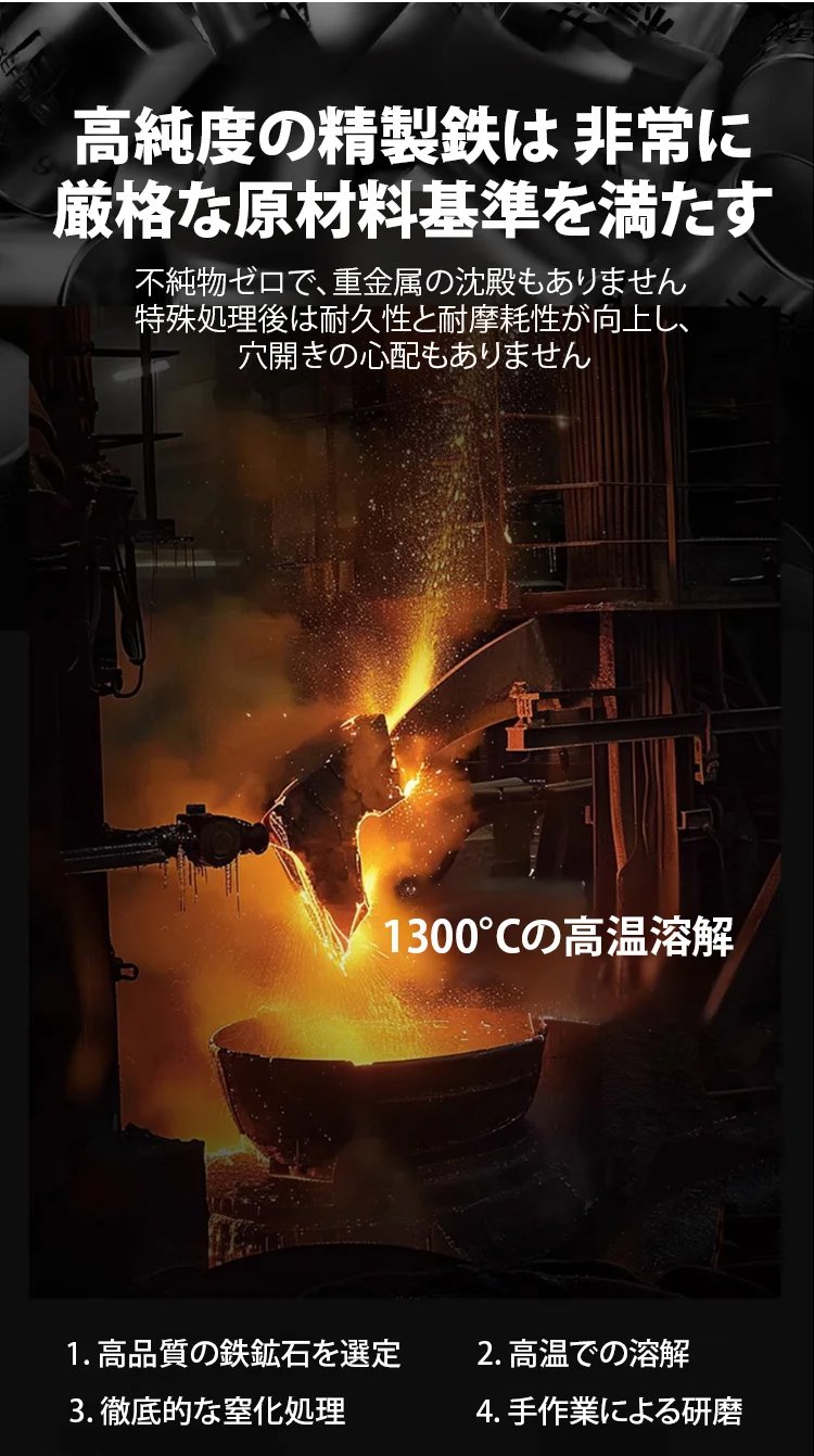 星級ホテルのシェフ長推薦、コーティングなし、一生使っても錆びない!